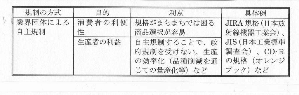 ここでは、産業科学論から規制をのべているが、規制には、この他、個人保護、放送内容、病床の規制、倫理的な規制など種々の規制が制定されている。