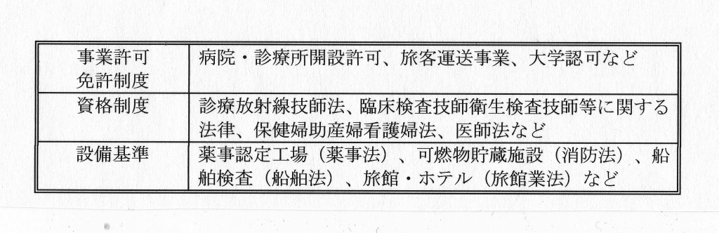 免許制度 病院・診療所開設許可、旅客運送事業、大学認可など
